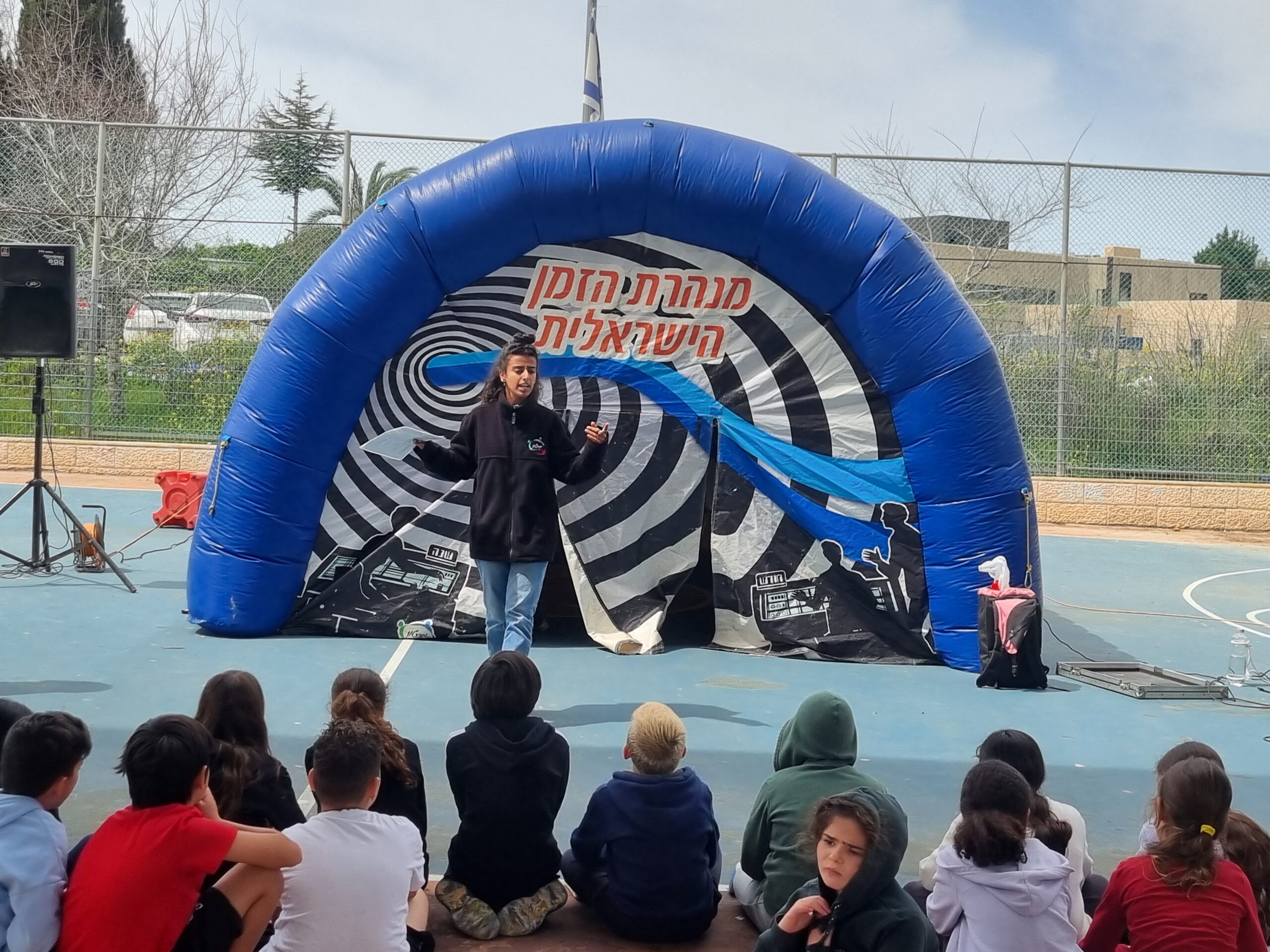 ברחבה המרכזית של בית הספר נפרסת מכונת הזמן – מנהרה ענקית ומוארת שדרכה יוצאים התלמידים למסע יוצא דופן בין תקופות, דמויות ואירועים שהפכו את מדינת ישראל למה שהיא היום.